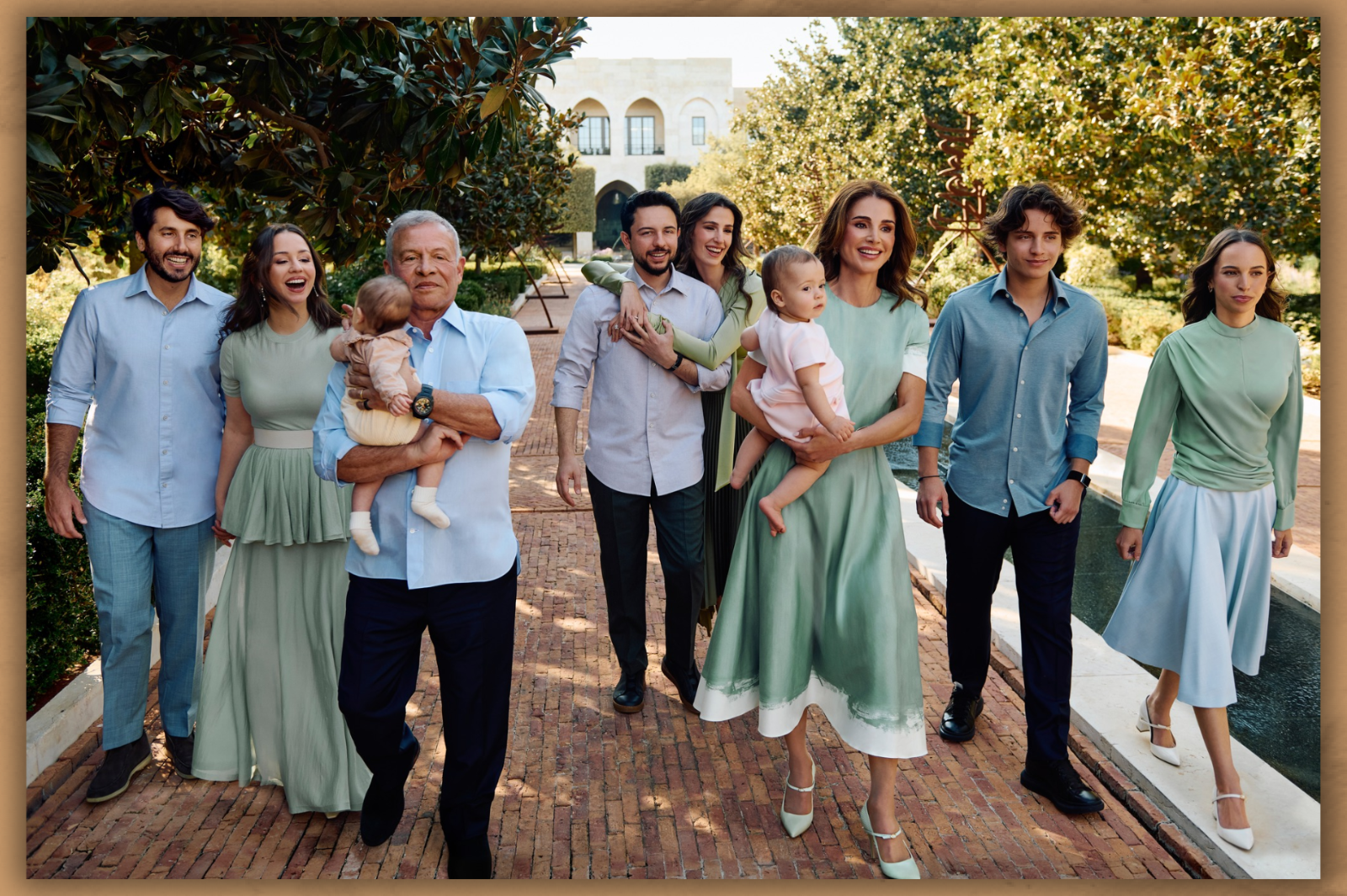 King Abdullah and Queen Rania shared their New Year’s greetings a little earlier than usual this year. The photo featured the King and Queen’s children and their spouses, all in coordinated outfits, while the King and Queen held their granddaughters, celebrating their most cherished roles as grandparents.