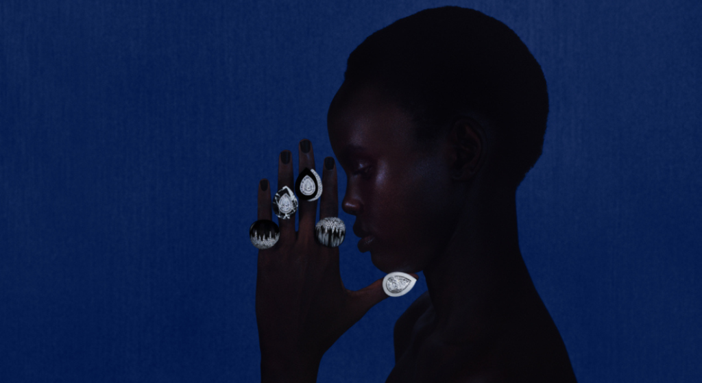 Similar ingenuity defines "Banquise." Here, Grand Antique marble, a subtly veined marble, is used to create rings and earrings that capture the essence of Iceland's ice floes. This unconventional material, paired with diamonds, adds a touch of organic luxury to the collection.