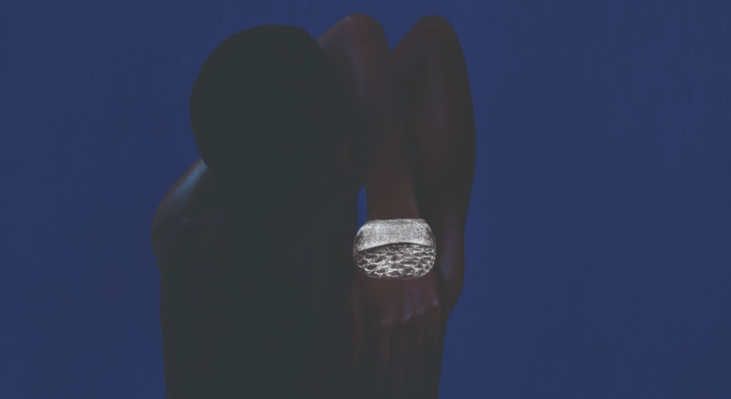 Black sand finds new life in "Sable Noir." A 3D printing technique meticulously binds sand particles together, creating a lightweight yet durable material that shimmers with diamonds. This innovative approach breathes life into a natural element, transforming it into a piece of wearable art.
