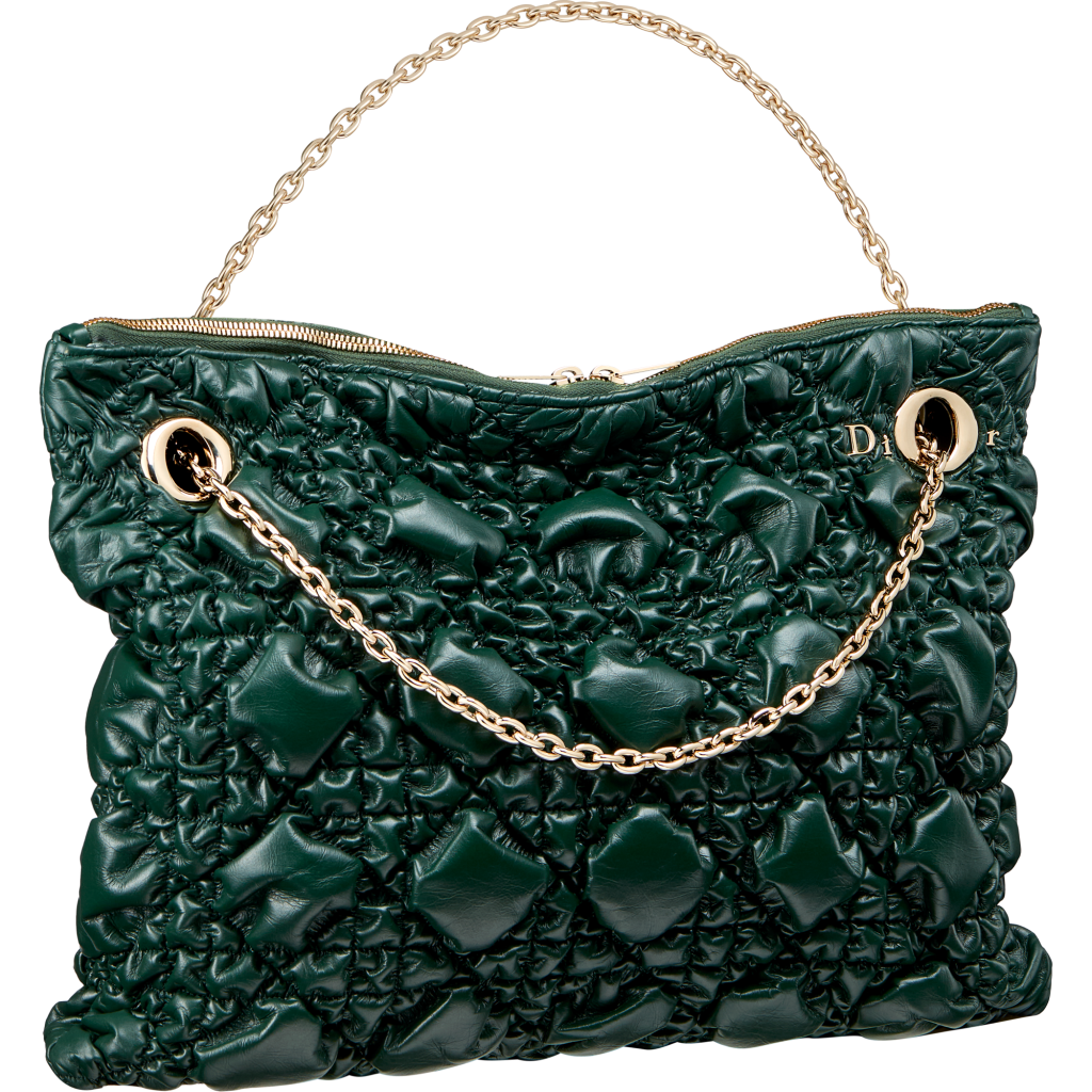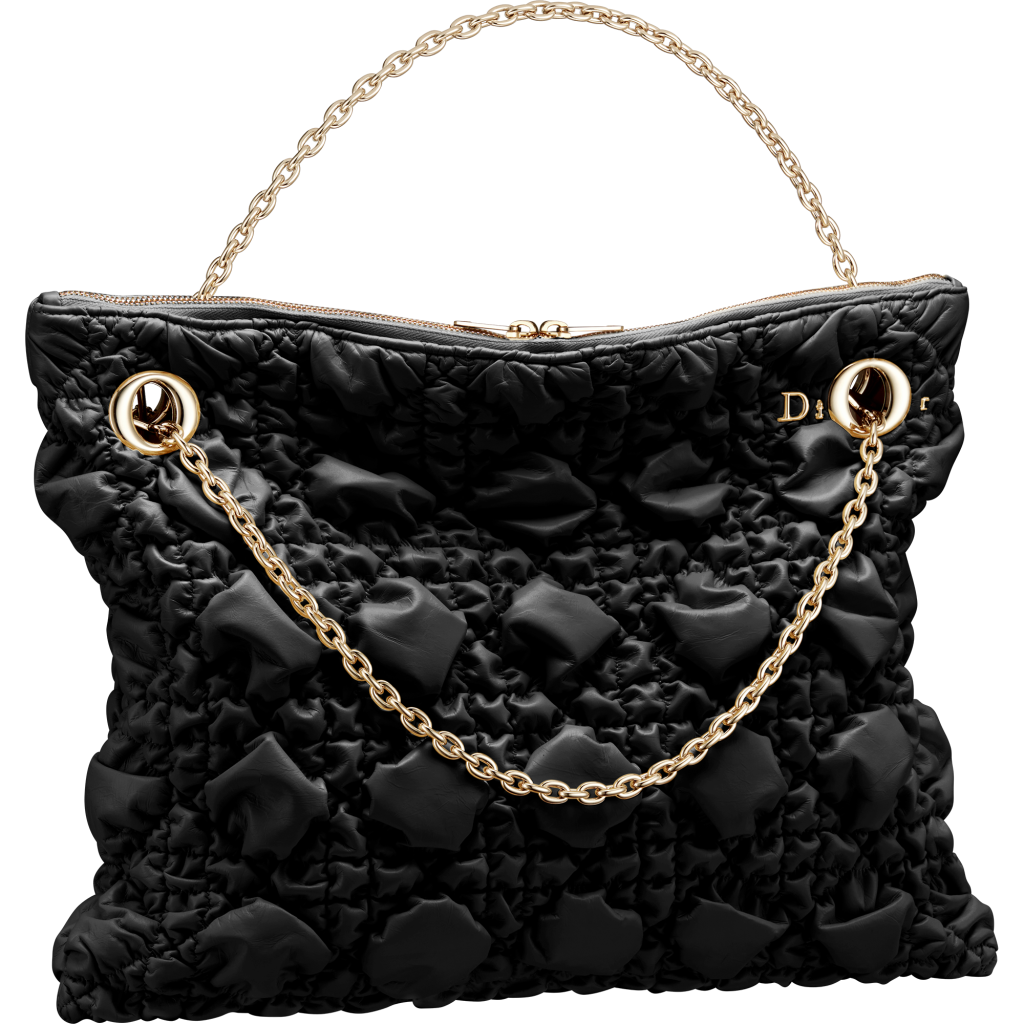 At the heart of the design is a modern silhouette that revisits Dior’s iconic cannage motif, elevated through bold three-dimensional graphics. The bag is crafted from a distinctive “crunchy” leather, characterized by its subtly crinkled grain. This unique texture creates a captivating contrast between structure and softness, producing a dynamic interplay of light and relief that brings the piece to life.