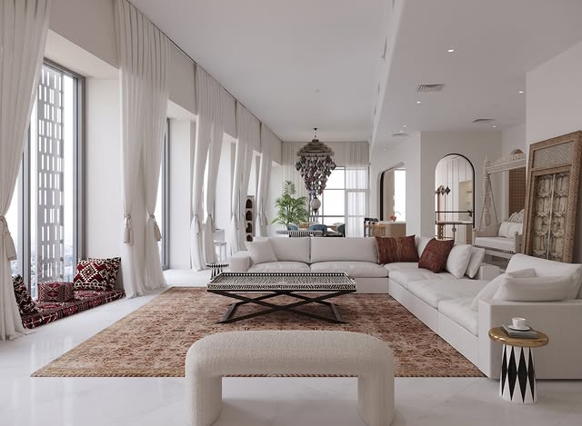 This is perhaps the most defining element of refined UAE homes. Whether moving from the majlis to the living area, from dining to the terrace, or from indoors to outdoors, spaces should feel intuitive and generous.