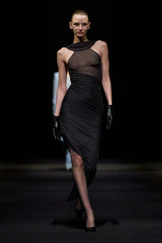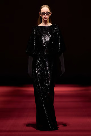 High glamour was the theme of the evening, with the collection featured a range of silhouettes incorporating gold-toned fabrics, Grecian-style draping, and sculptural forms. While individual looks varied, metallic finishes and embellished fabrics recurred throughout the line, coupled with softer draped elements.