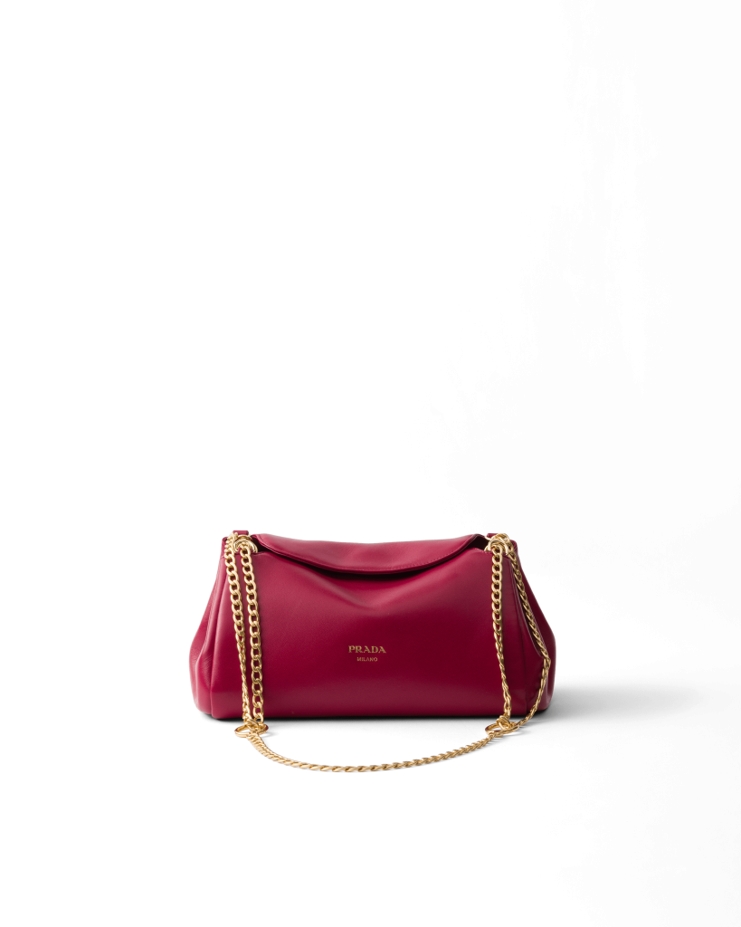 Unveiled during Prada’s Fall/Winter 2025 show, the Tumulte is a study in contrasts: soft yet structured, sensual yet strong. Its rounded silhouette is enhanced by accordion sides and delicate metal rings that hold double-jewel chains, giving it the effect of jewellery in motion. Crafted in supple nappa leather or aged calfskin, with hand-finished edges, it’s a versatile piece that can be worn in multiple ways.