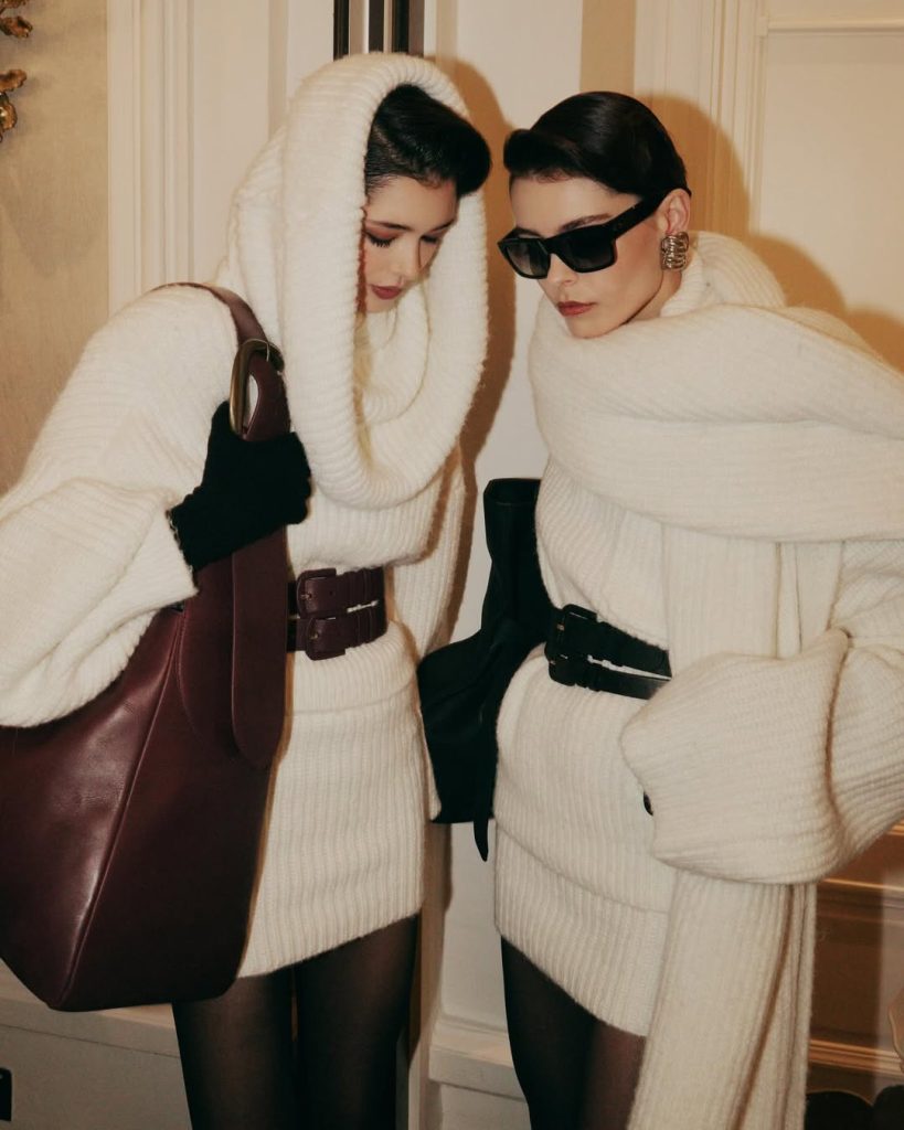 In terms of accessories, William focused on oversized handbags and long, chunky scarves to complete the outfits, giving the overall collection texture and weight.