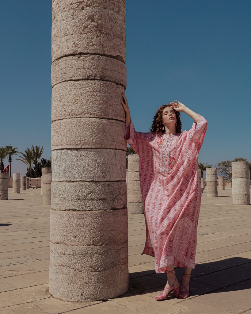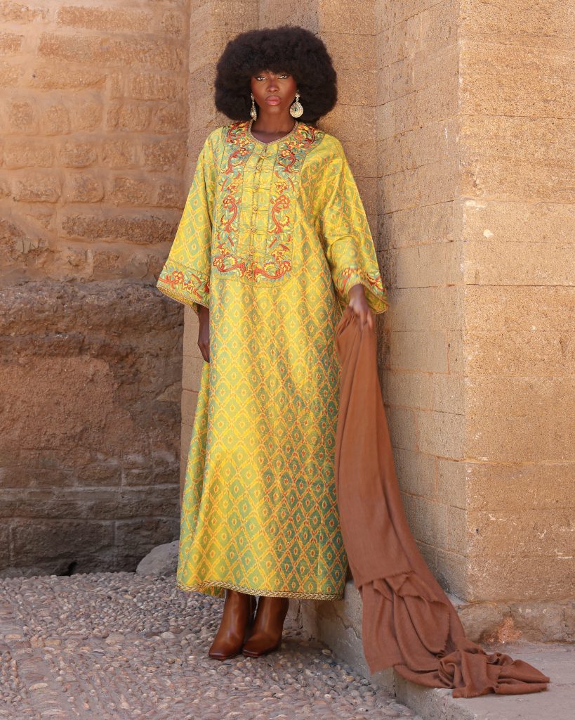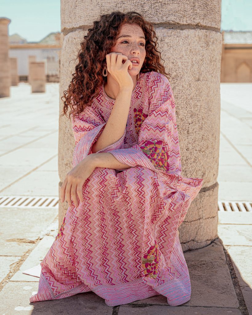 That philosophy extends beyond production into the very way the pieces are worn. OSOUL is size-free by design, reflecting the inclusive nature of traditional Moroccan dress, and allowing women to move comfortably within the garments. Travel, too, plays a quiet but important role in shaping Kenza’s creative lens. “Travel opens my eyes. Every place I visit — the colours, the textures, the women, the way people dress — becomes a source of inspiration. But no matter where I go, I bring everything back to Morocco. My travels add new ideas, but my roots give them meaning.”
