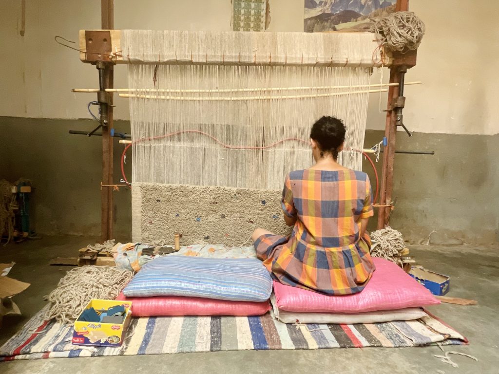 Mina Abouzhara: During a longer residency, I started noticing rituals around weaving. For example, women smash sugar when they set up a loom, because the rug should have a sweet soul. At night, they cover the loom with a dark cloth or place a knife in it to protect against the evil eye. If they don’t begin weaving the same day the loom is set up, they might put flour on it, so it doesn’t get hungry overnight. These details reveal how alive the loom is in their world. Weaving is self-expression, but it also connects to ritual textiles, marriage traditions, and community life.