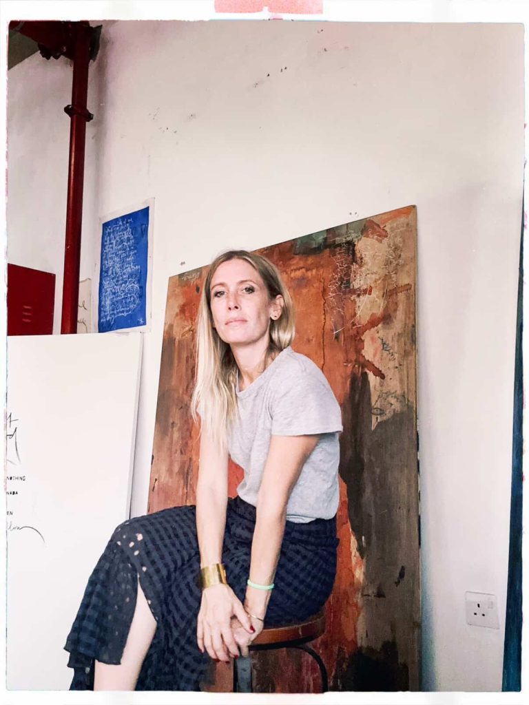 After studying graphic design at Central Saint Martins, she felt the pull toward something more tactile and intuitive. “Working on a computer removed the human side of things. I missed the mess, the movement, the mistakes,” she explains. The birth of her third child became the turning point, and Cade Khelifi embraced fine art as her true path.