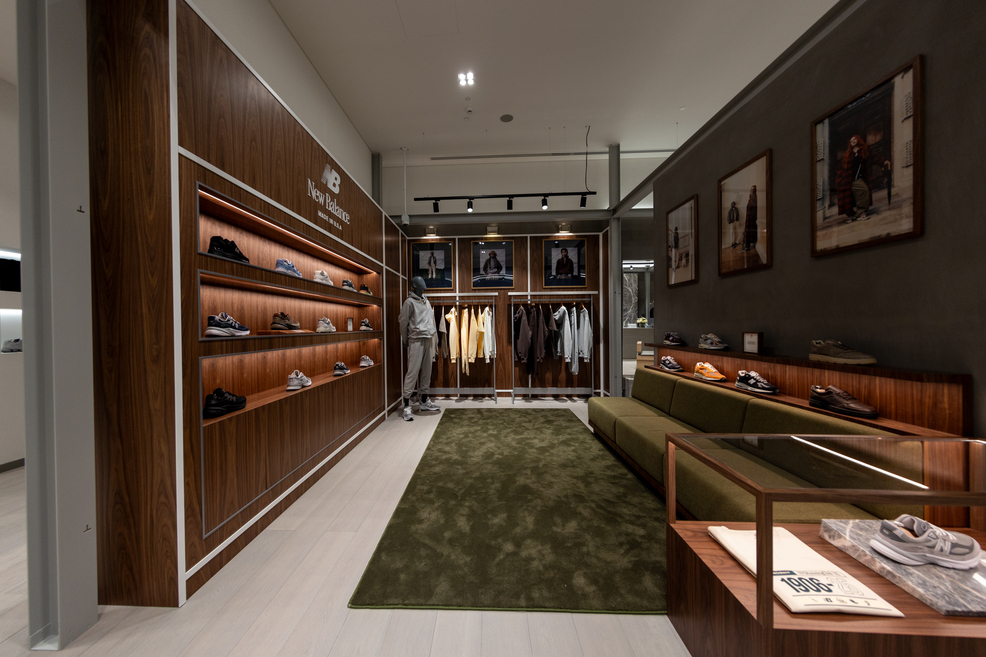 At the heart of the space is an elevated assortment of the brand’s most premium footwear and apparel capsules, defined by superior materials, refined aesthetics, and meticulous construction. The store highlights exclusive collections from the iconic Made in USA and Made in UK lines, crafted in New Balance’s own manufacturing facilities in the United States and England. For more than four decades, these workshops have embodied artisanal expertise and uncompromising standards, shaping the brand’s reputation for enduring quality and quiet luxury.