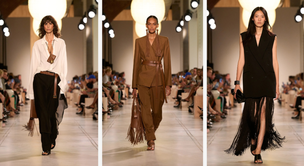Michael Kors embraced relaxed luxury with his SS26 collection. Offering earthy elegance and fluid ease, the show featured liquid draping, soft tailoring, and pieces designed to catch the summer breeze. Warm sunset tones, transparency, and the movement of fringe and tassels evoked a Mediterranean getaway. The collection epitomised pared-back glamour for women with innate elegance.