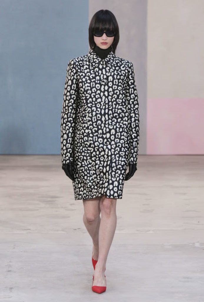 Standout pieces included leopard-print knit jacquard and intarsia, as well as compression knits in viscose and silk in the same motif, paired with coordinating jacquard shoes.