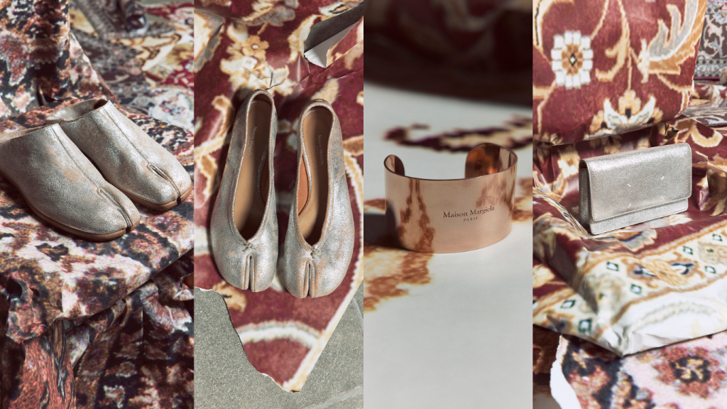 Maison Margiela introduces a Middle East exclusive Ramadan capsule centered on its iconic Tabi. Rendered in soft gold tones, the selection features the women’s Tabi Ballerina and the men’s Tabi Babouche in a subtle metallic finish, alongside a gold leather wallet on chain detailed with the Maison’s signature Four Stitches and a minimalist sculptural cuff. Designed to move effortlessly from day to evening, the capsule brings together signature silhouettes reimagined through refined, gold-toned materials.