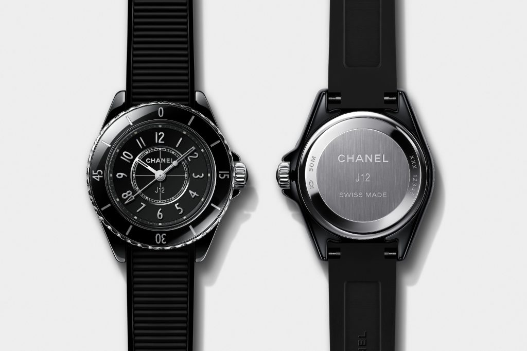 In 2026, the CHANEL Watchmaking Creation Studio once again explores the territory of J12 with full creative freedom, this time in case dimensions. Characterized by its unisex identity, this horological icon introduces two new opposing formats: in a miniature 28 MM and an oversized 42 MM case. Six models make up the J12 28 MM collection. Alongside black or white ceramic watches, the Watchmaking Creation Studio unveils, for the first time, a J12 equipped with a textured black rubber strap with trimming. Equally original, the duo of the J12 GOLDEN BLACK limited edition is revealed through a 28 MM miniature size and a 42 MM maxi size with a contrasting aesthetic: a polished or matte black ceramic illuminated by yellow gold-plated indexes.