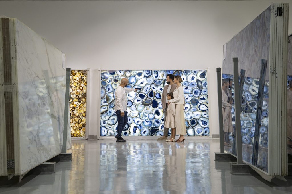 The brand’s flagship showroom at Dubai’s Art of Living Mall reflects this philosophy. Designed as an immersive environment rather than a conventional retail space, it invites architects, interior designers and private clients to explore stone in its most expressive forms — veined, sculptural, dramatic or restrained. Here, stone becomes atmosphere, texture and narrative, equally at home in contemporary villas as it is in heritage-inspired interiors.