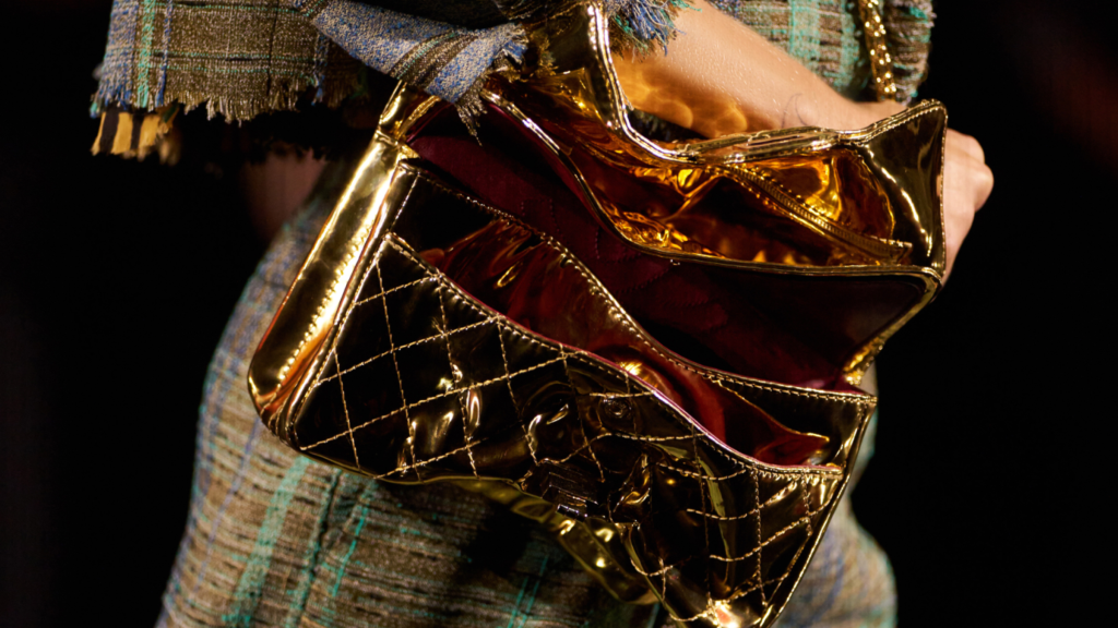 At Chanel, Matthieu Blazy reimagined the 2.55 flap bag. The signature quilting and chain handle remained, but the addition of structural wire has given it new life.
